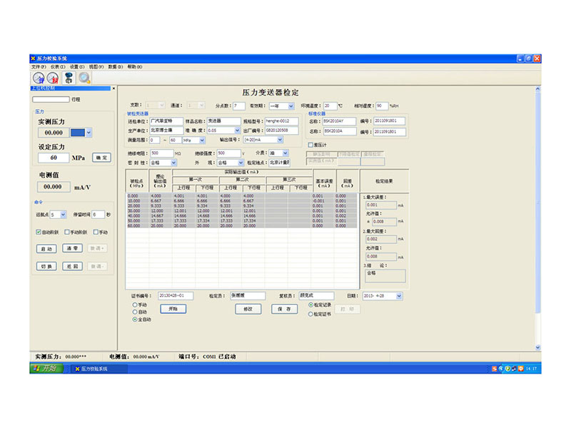 ◆ 運(yùn)用Windows XP或Windows 7 /8/10/11操作系統(tǒng),全中文界面操作??蓹z定普通壓力表、精密壓力表,壓力變送器、壓力傳感器、壓力開關(guān)、壓力控制器等壓力儀表